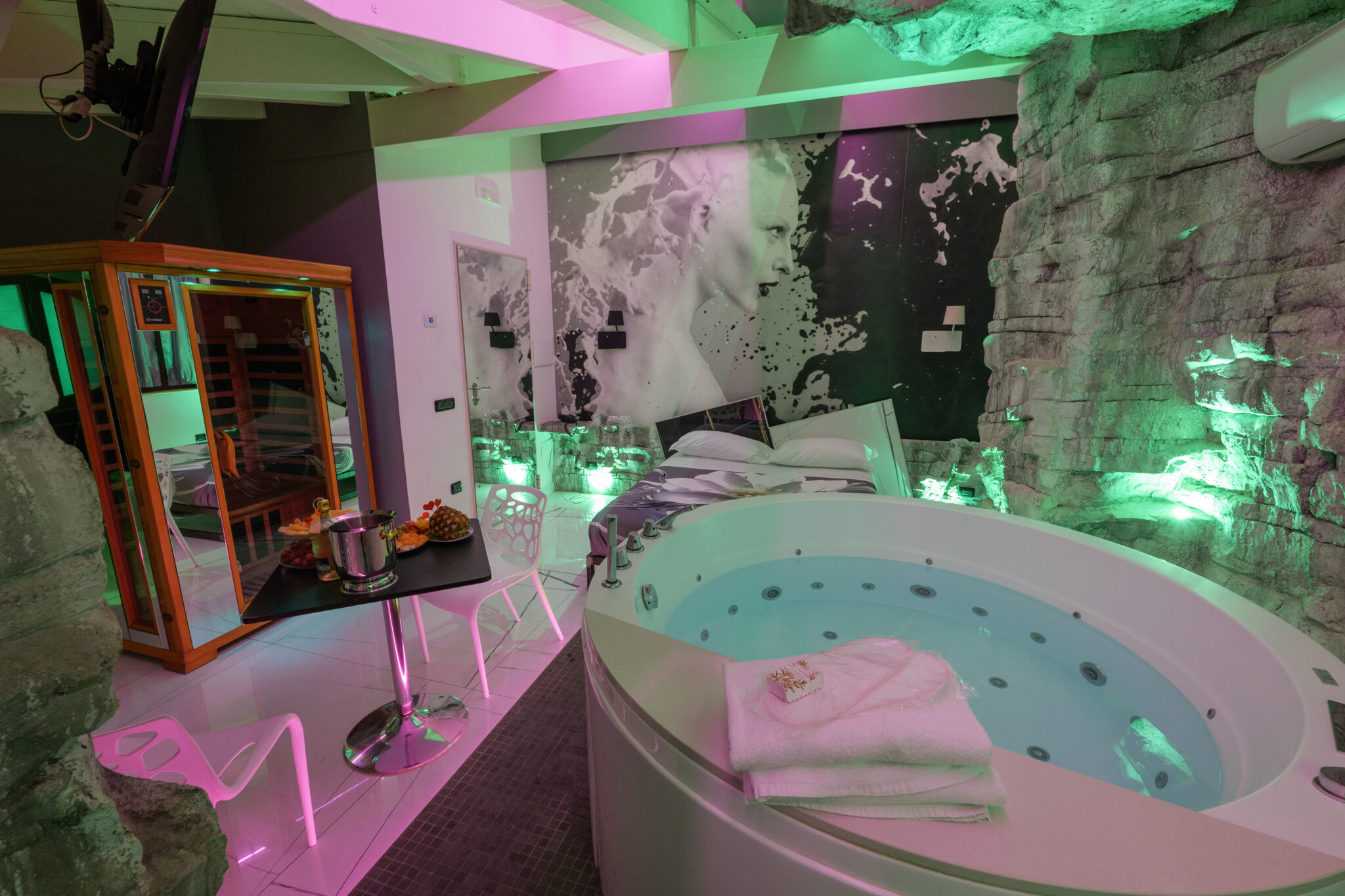La suite Armonia rappresenta un’oasi di pace e bellezza, pensata per offrire un soggiorno che unisce comfort e benessere. L’arredamento minimalista e i colori neutri creano un ambiente rilassante, perfetto per rigenerarsi dopo una giornata di esplorazione. Ampio balcone esterno, mentre gli spazi interni sono arredati con materiali naturali e dettagli di design. Dotata di doccia cromoterapica, sauna e jacuzzi.